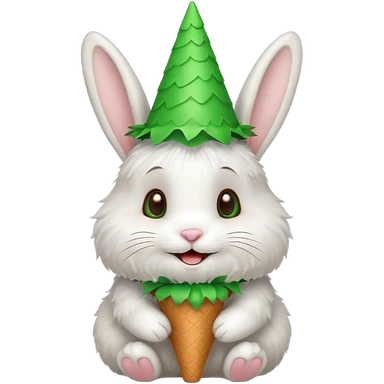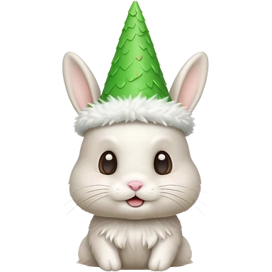 Rabbit in Green Party Hat – white bunny with cone party hat emoji