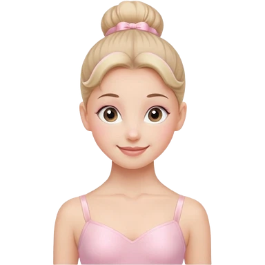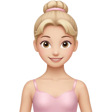 Pink Suit – Cheerful Smiling ballerina in pastel pink leotard, tidy high bun, bright happy eyes. emoji