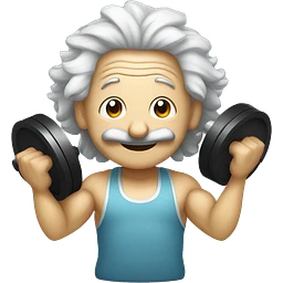 albert einstein happy in the gym with dumbells emoji | AI Emoji Generator