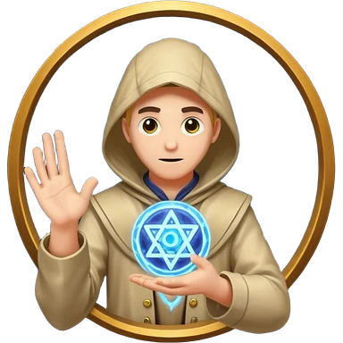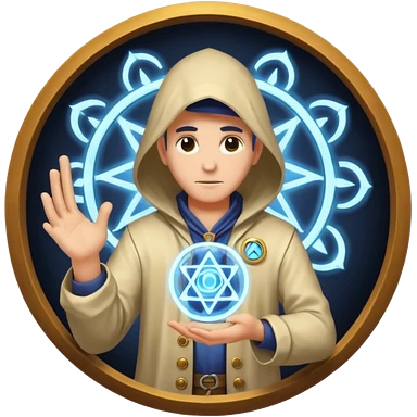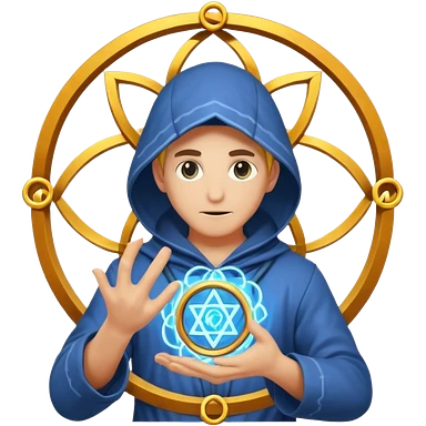 human alchemist character sudden idea with glowing transmutation circle emoji