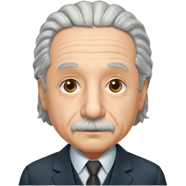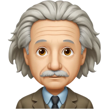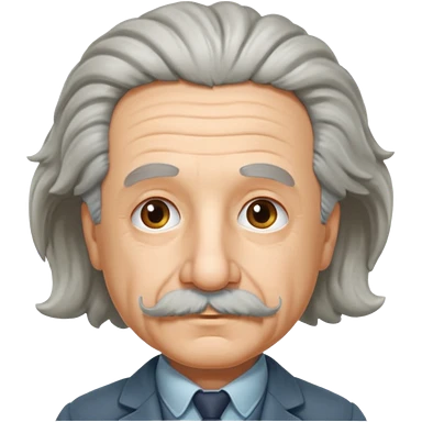 a scientist similar Albert Einstein, bald over head, with black hair on the sides of his head, a large black mustache and circle like sunglasses. Wearing a white suit. emoji