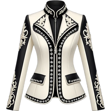 Alexander McQueen brand Cropped black detailed jacket for women, luxury edgy skull style, detailed embellishments. 8k, 5000x5000px, 3D rendering, realistic, isolated still life, no emoji faces no emoji icons no human figures emoji | AI Emoji Generator
