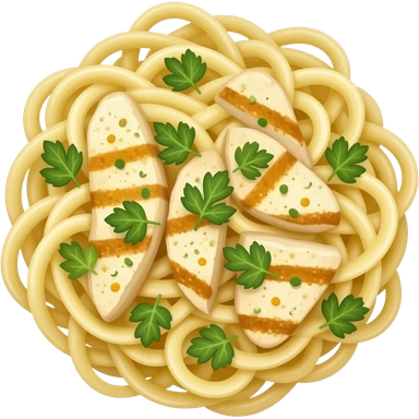 Chicken Alfredo pasta with white crème sauce and grilled chicken on top emoji