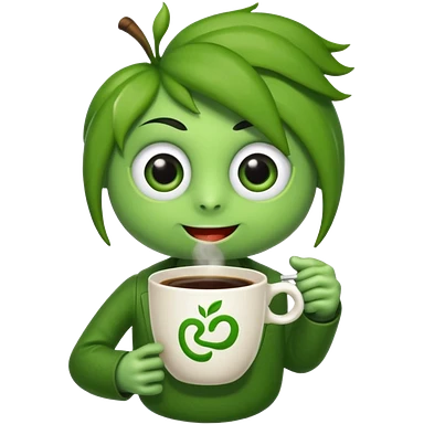 Cut the Rope's Om Nom cute from in barista's suite with a cup of cofee emoji