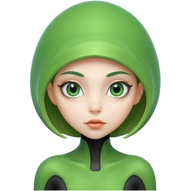 An alien girl, green skin, purple hair, she waves her hand emoji