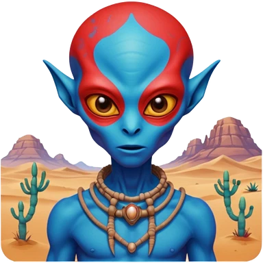 alien living in desert, dressed like a desert alien, red/blue colorful, accessories, just face emoji