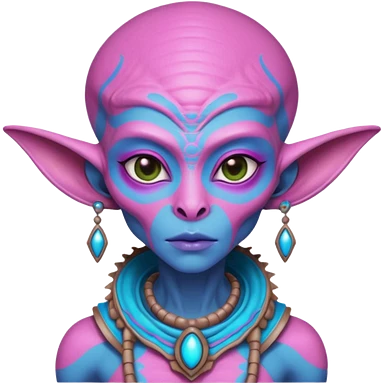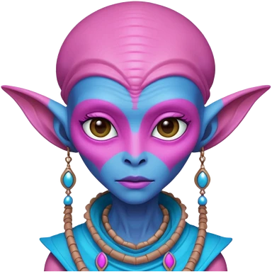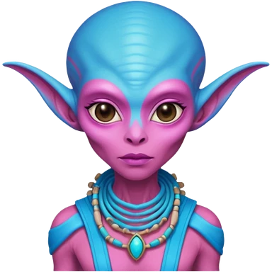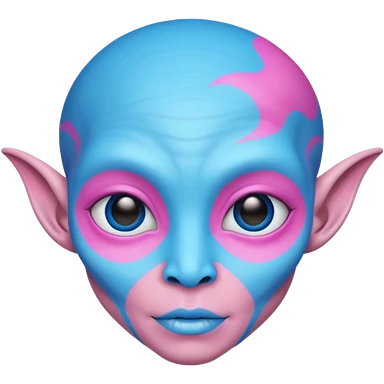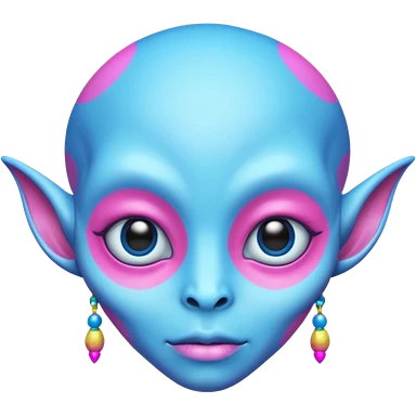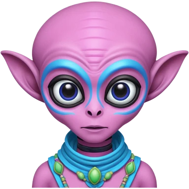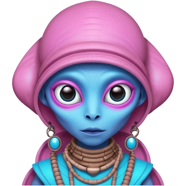 alien living in desert, dressed like a desert alien, pink/blue colorful, accessories, just face emoji