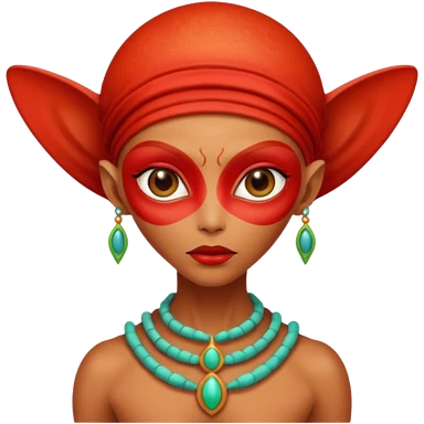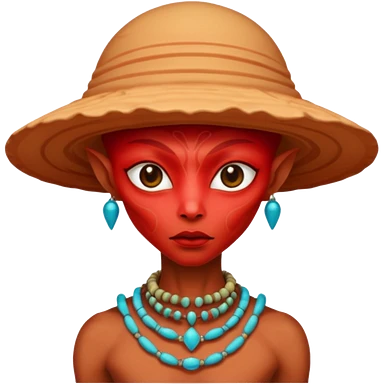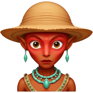 alien living in desert, dressed like a desert alien, redcolorful, accessories, just face emoji