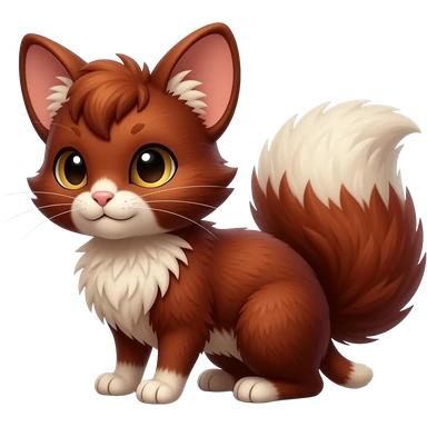 Dark Brownish red soft natural realistic romantic vintage antique divine beautiful elegant pretty precious cute young youthful Fakémon-Pokémon-alien-opossum-genet-civet-red-panda-feline-rodent-hybrid-creature (full body) emoji