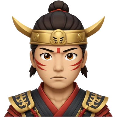 Portrait of a warrior alien with armored skin, glowing scars, sharp features, piercing eyes, and intense expression, front-facing emoji