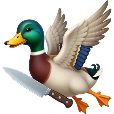 a duck with knife like the one in the photo https://co.pinterest.com/pin/303570831151689174/ But change it and make it moving emoji