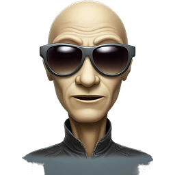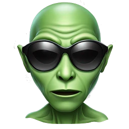 an old alien with black suit, green skin, neutral, sunglass emoji