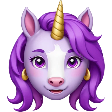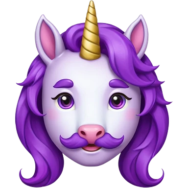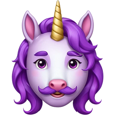 unicorn face with big thick mustache cute and purple haired and earrings emoji
