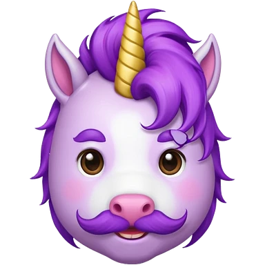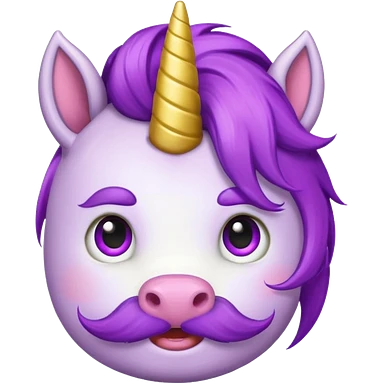 unicorn face with big thick mustache cute and purple haired mohawk emoji