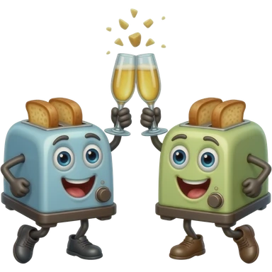 An alive toaster doing 🥂 cheers with another alive toaster emoji