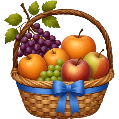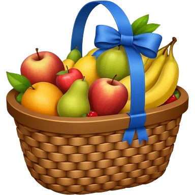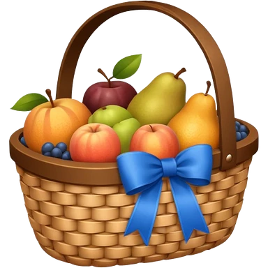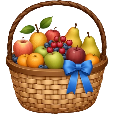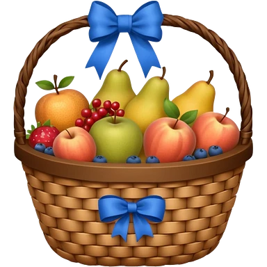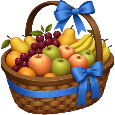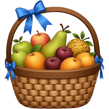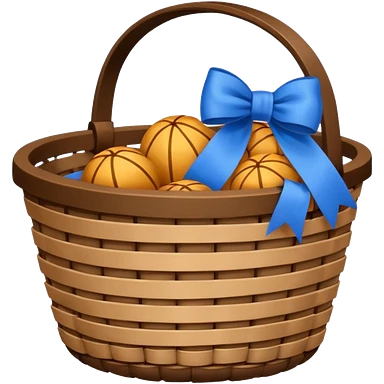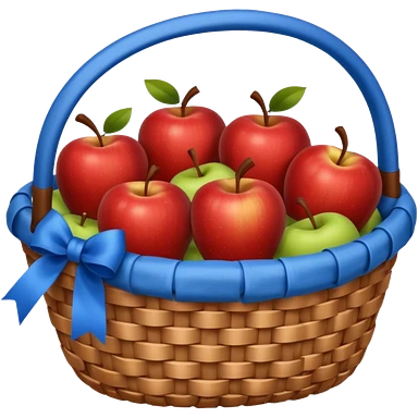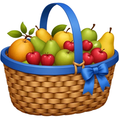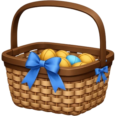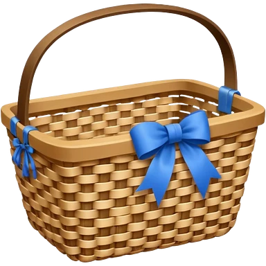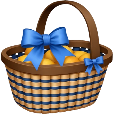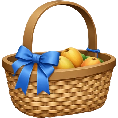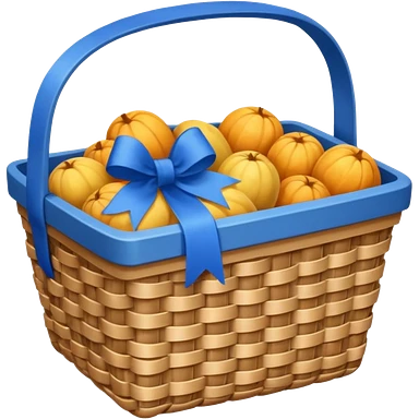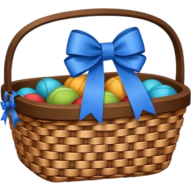 A basket with a blue ribbon on the handle emoji