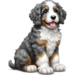 A bernadoodle breed dog, hair all black. All black except for white on its neck. an all black face emoji
