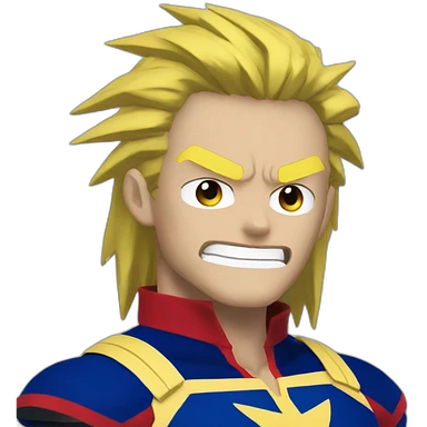 all might from my hero academia with his costum stand up with a raised fist emoji