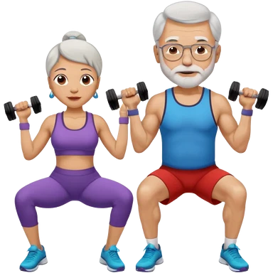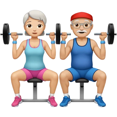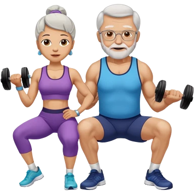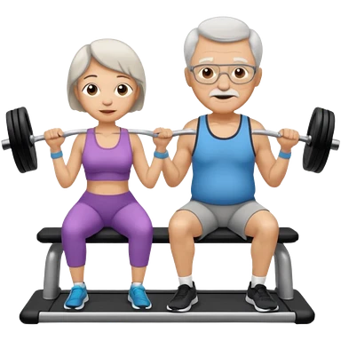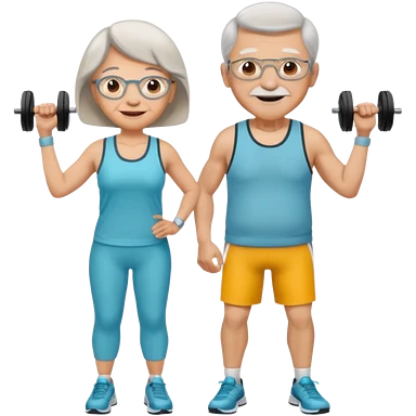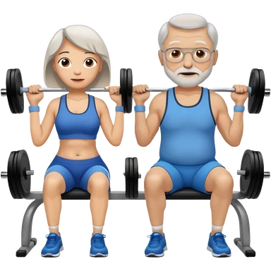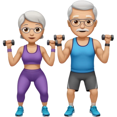 light skin grandma and grandpa work out at the gym and They have neutral colours of clothes emoji