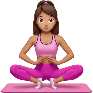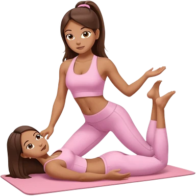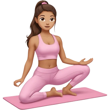 White girl light brown hair doing yoga with pink alo yoga outfit emoji