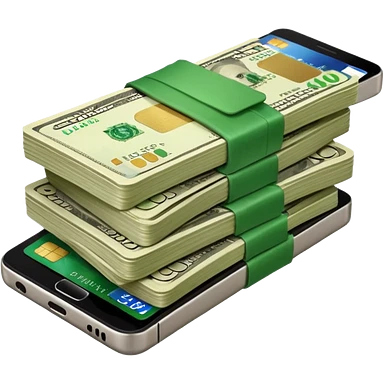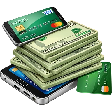efectivo en dólares, un teléfono y unas tarjetas, todo con un estilo limpio, profesional y que transmita dinero y movimiento. emoji
