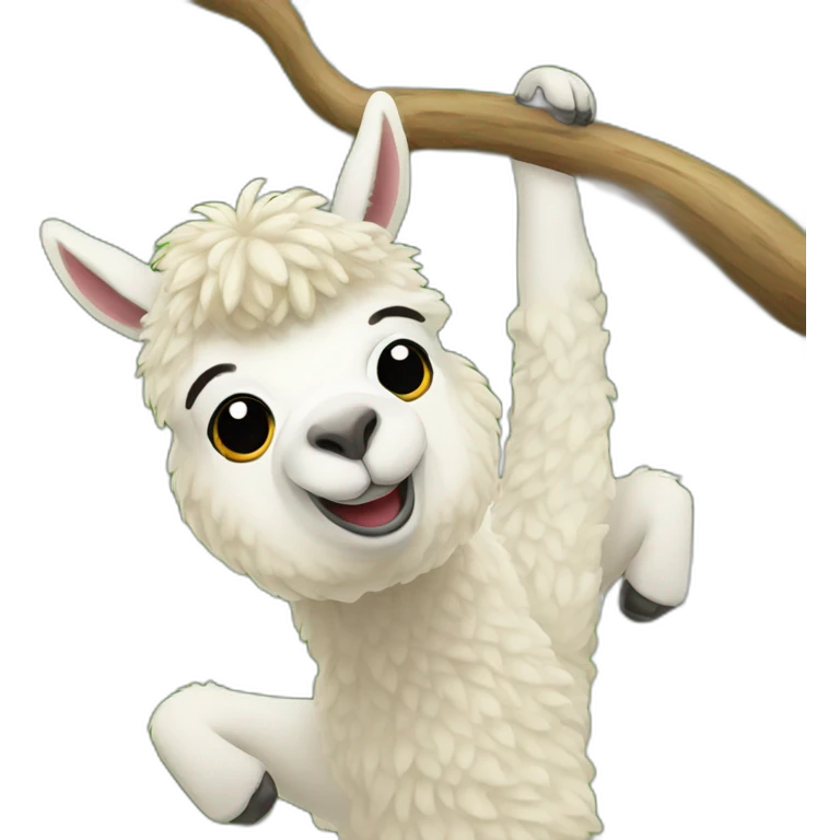 Alpaca hanging upside down from a tree emoji | AI Emoji Generator