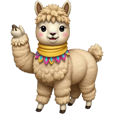 Give me an alpaca with a shocked Face. The alpaca is wearing s cute sweater emoji