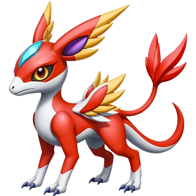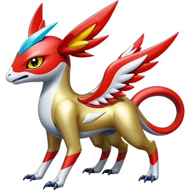 Latias-Vernid-Sergal-Lombax-Koraidon-Renamon-Zeraora-Bastet-Fakémon-Digimon-hybrid-fusion-creature, full body emoji