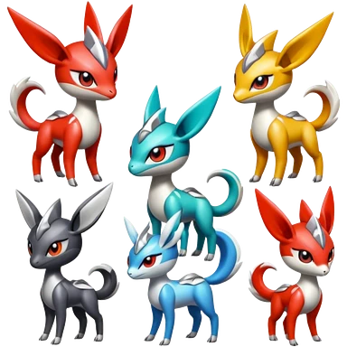Shiny Colorful Sergal-Meloetta-Latias-Koraidon-Peppercat-Wargreymon-Protogen-Pokémon-Digimon-Fakémon-fusion-hybrid-creature emoji