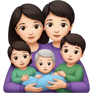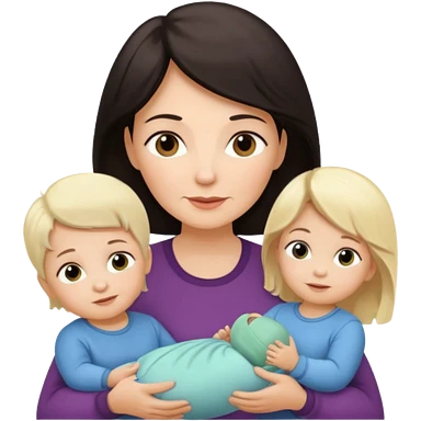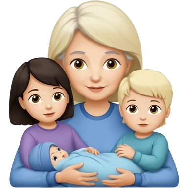 Alte Frau dunkles Haar mit Enkeln Kleinkind Mädchen 2 Babys Mädchen und Junge emoji