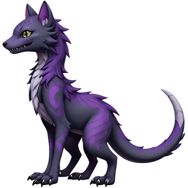 hyper-realistic cool edgy dark black purplish blackish edgy fantasy ethereal feline-vernid-sergal-monster-furret-Lycanroc-umbreon-fursona animal creature full body with intricate markings emoji