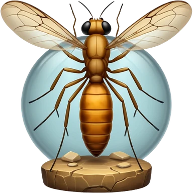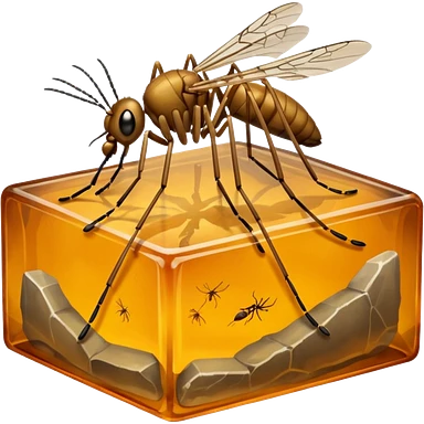 3D render of Amber Mosquito, embedded in a chunk of rough sedimentary rock, cracked stone texture, ancient fossil aesthetic, trapped inside a glowing translucent orange amber gem, matte dry finish, Apple emoji style, isolated on white background --v 6.0 emoji