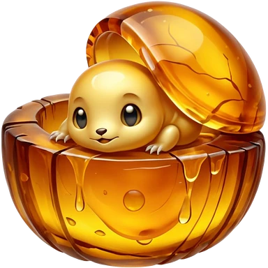 A tiny creature trapped in a huge lump of amber emoji