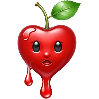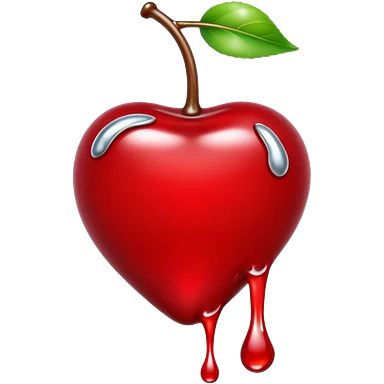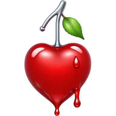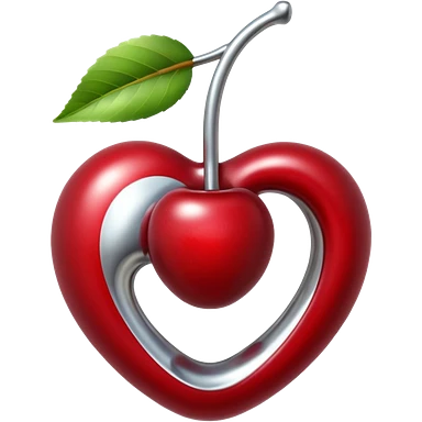 bitten cherry, liquid silver chrome, playful erotic symbolism, glossy shine emoji