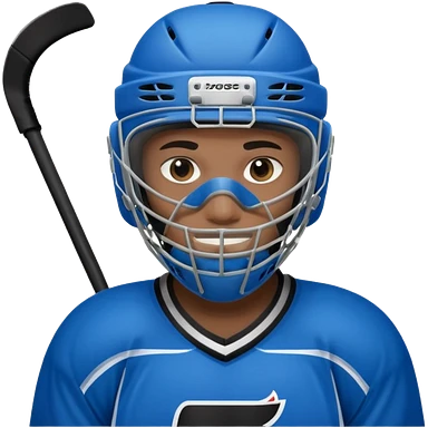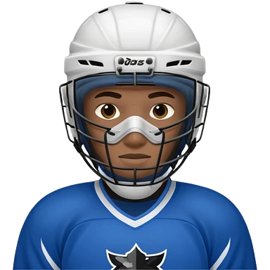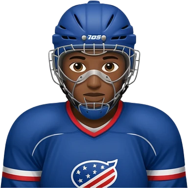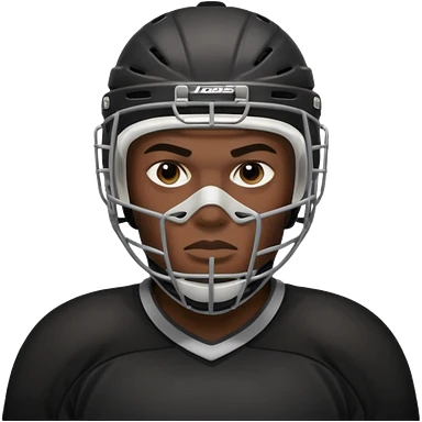 American black Hockey player without a Helmet and have a goalkeeper mask which have small holes emoji