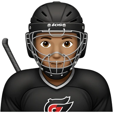 Black player of ice hockey who have a goalkeeper mask which have small holes emoji