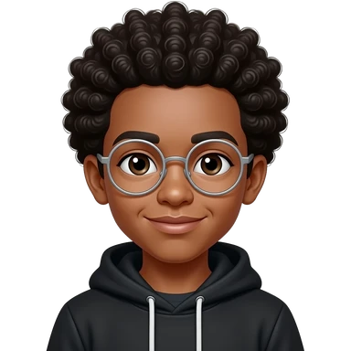 African American boy with Afro eyeglasses and black hoodie emoji
