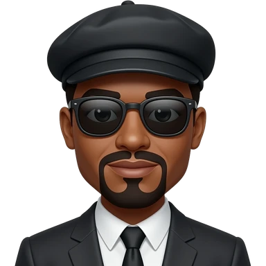 A young African-American male with short, thick dreadlocks, a friendly, confident smile, a trimmed goatee, and sharp facial features. He is wearing a cap. emoji
