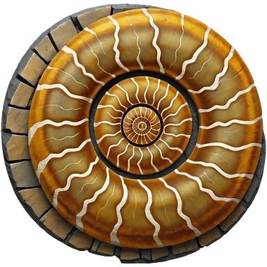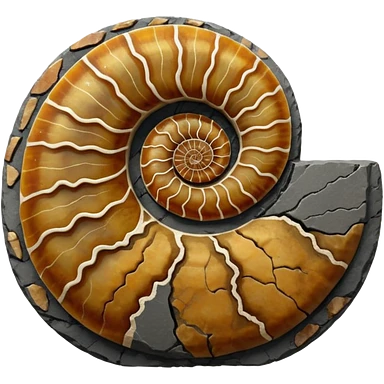 3D render of Ammonite, embedded in a chunk of rough sedimentary rock, cracked stone texture, ancient fossil aesthetic, embedded in dark grey slate stone, matte dry finish, Apple emoji style, isolated on white background --v 6.0 emoji