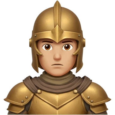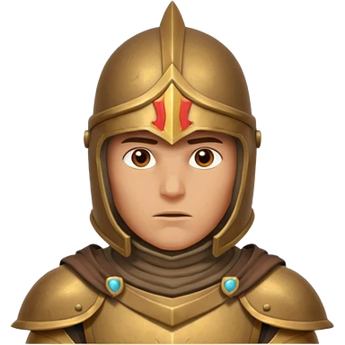 armored desert guardian portrait, head and shoulders only, bronze helmet, desert cape collar, battle-worn armor, strong expression, 3D cartoon, mobile game icon style, clean background, no text, no watermark emoji