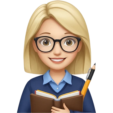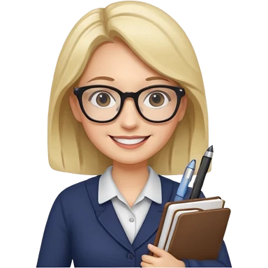 A true woman who is interested in dermatology, wearing glasses and holding notebooks and pens emoji