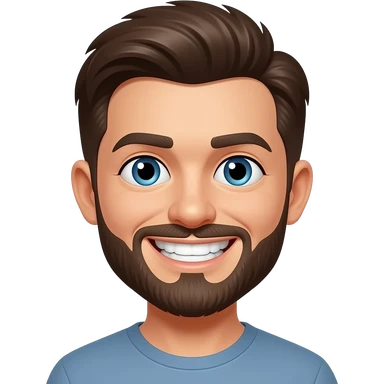 An emoji of myself tall Asian male with a beard and a beanie hat. With a big smile emoji