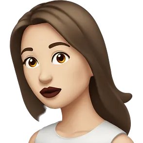 women with brown hair, fair skin, dark red lips, straight hair, brown eyes giving an air kiss emoji