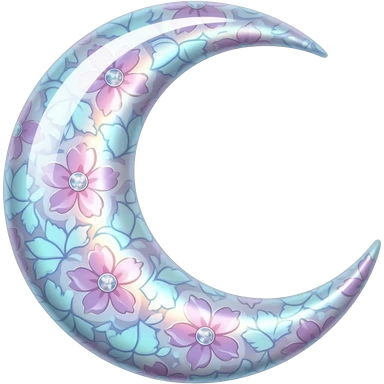 glossy Pastel iridescent floral shiny crystal crescent damask moon emoji