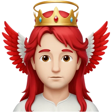 long hair angel with a red crown on his head, 4 wings emoji
