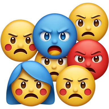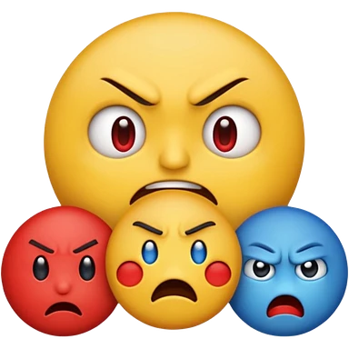 An angry emoji + sad emoji + silly emoji emoji