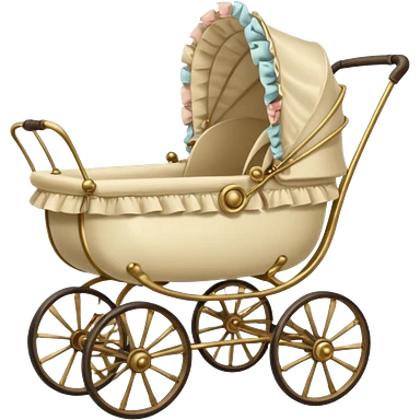 An antique baby stoller with bis wire wheels and a ruffeled bonnet emoji | AI Emoji Generator