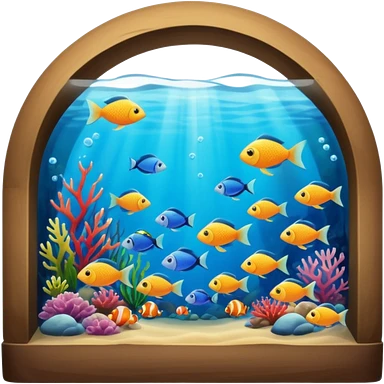 Nostalgic aquarium with sea life inside and colored lights emoji