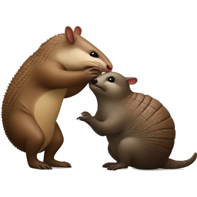 An armadillo and hairy otter giving a kiss emoji | AI Emoji Generator