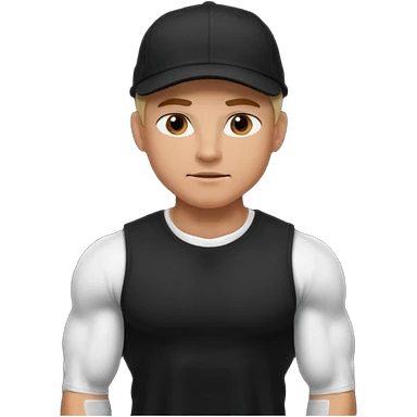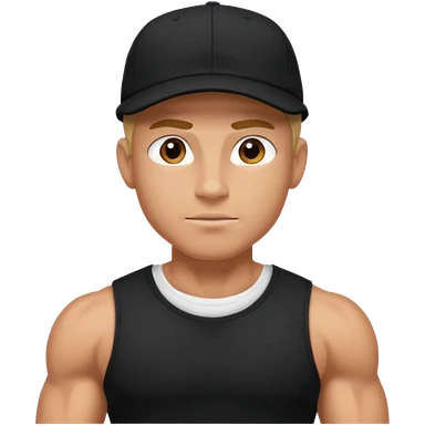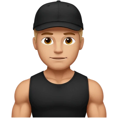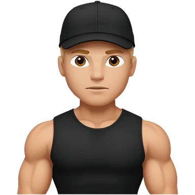 An arrogant guy in a black t-shirt, he is muscled and has a cap emoji